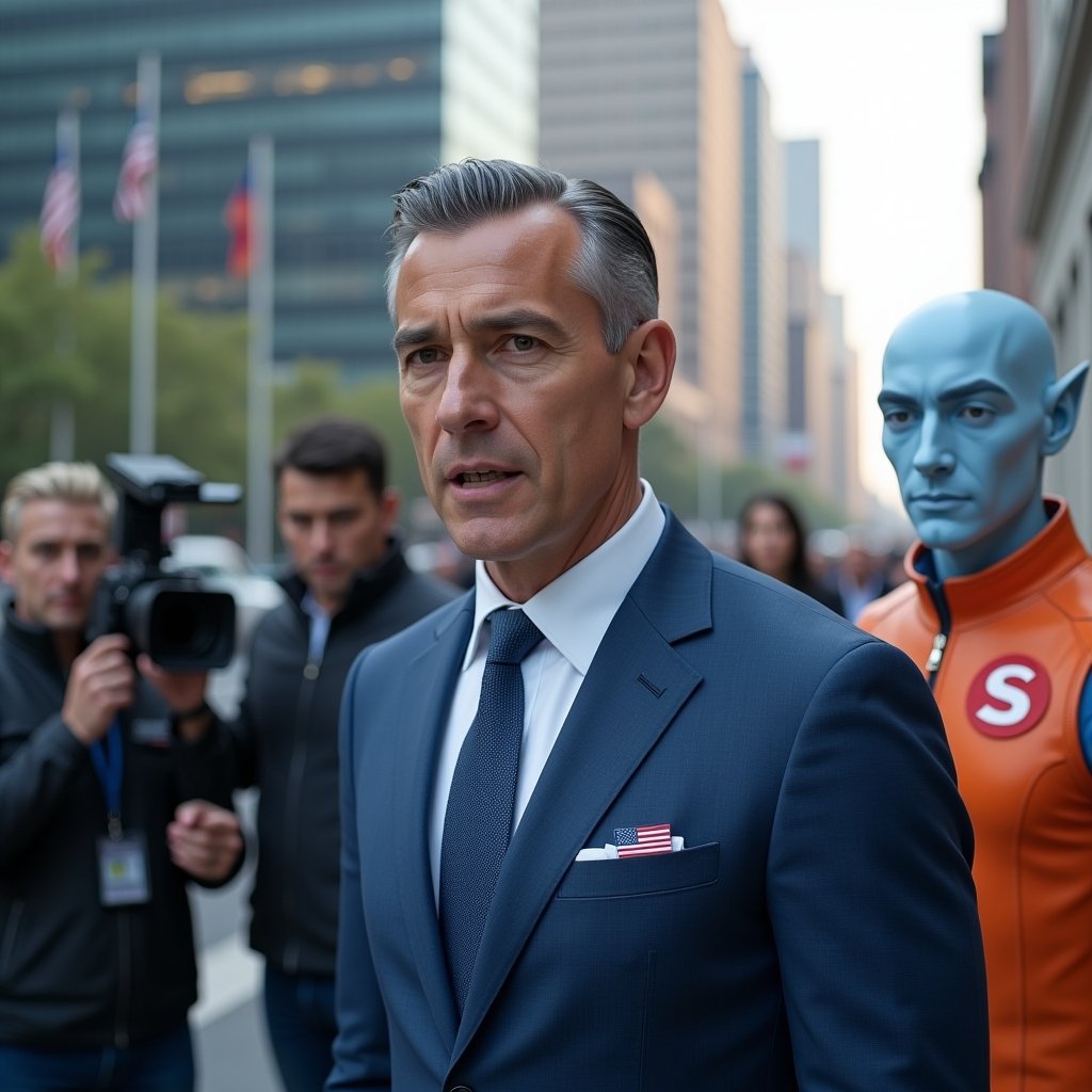 I figured Shalzed probably didn’t know much about Iran. Before I could say anything, though, I was in the black tunnel. By now I was used to it enough that I was no longer afraid, and I really wanted to find out how it worked. A moment later I was outside the United Nations in New York, with Shalzed next to me. A man wearing a blue suit with a U.S. flag pin on his jacket was standing nearby, trying to attach a lapel microphone to his jacket. “Ambassador Waltz,” Shalzed called.