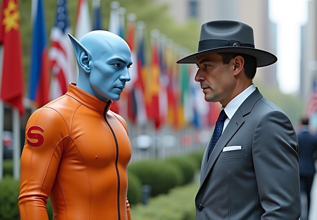 I noticed a thick, bluish liquid on his cheek, and had the sense he was starting to cry. He told me that he had been planning to return right back to his planet with the book he was holding, but he wouldn’t do so if human rights didn’t really work.